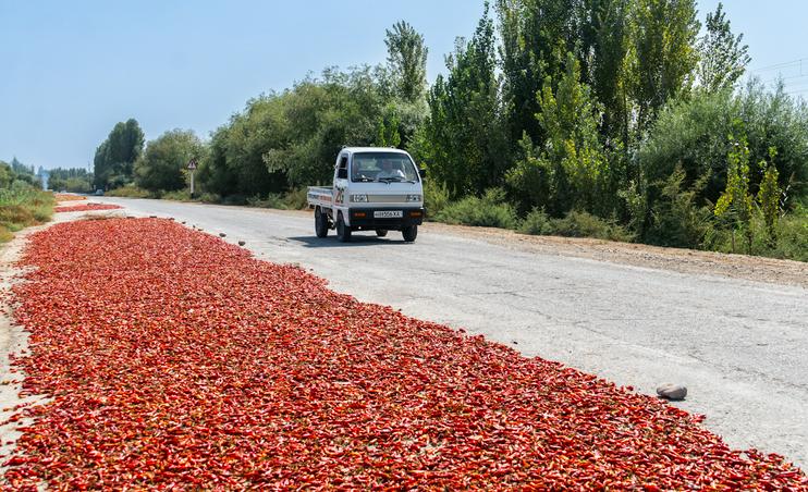 Lunedì, verso mezzogiorno, con difficoltà siamo riusciti a uscire dal traffico cittadino per imboccare l'autostrada internazionale A-373 Tashkent – Andijan – Osh – Kashgar. E siamo partiti con la modalità «uno guida, tre danno consigli a turno». Quasi non ci siamo accorti di aver attraversato il passo montano Kamchik a un'altitudine di 2268 metri sul livello del mare. Tuttavia, in questo periodo dell'anno, il passo non offre nessun interesse visivo. All'inizio dell'autunno tutti i colori della natura in Uzbekistan sono bruciati dal sole, e anche i paesaggi montani sono piuttosto monotoni.
