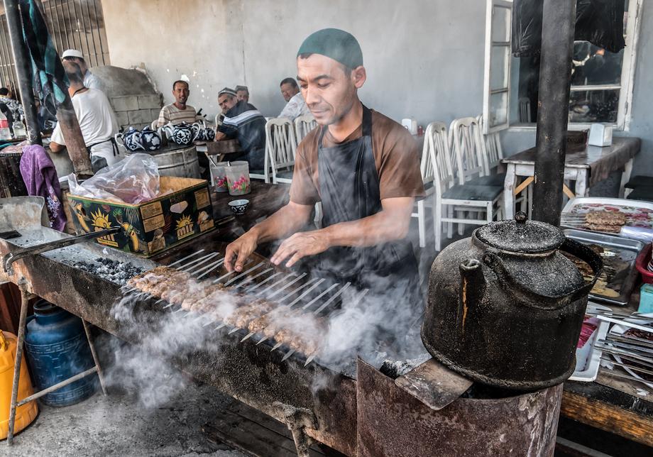 Inavvertitamente mi sono allontanato dai colleghi, ho messo la macchina fotografica nella borsa e mi sono semplicemente seduto nella teahouse, aspettandomi giustamente che prima o poi, molto probabilmente nel pomeriggio, Anzor Bukharski con i suoi compagni sarebbe venuto qui per il dolce fumo dell’arrosto.