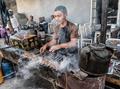Poi siamo andati nella città di Chust, al mercato dei tradizionali coltelli di Chust. Anzor ha trovato lì lascerie con fuochi ardenti.