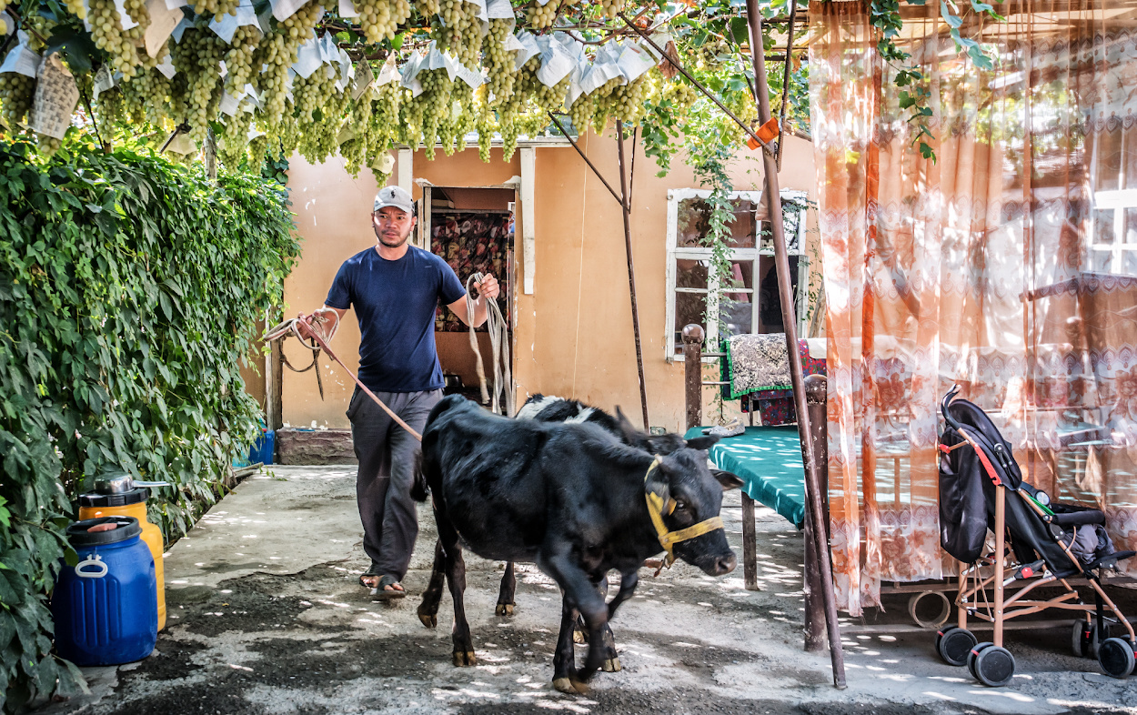 Durante il fototour nella Valle di Fergana ci sono stati molti altri momenti affascinanti. Il giorno successivo, nel villaggio di Belaryk nel distretto di Oltiarik, abbiamo visitato vaste vigne private intorno e dentro una casa di campagna. Ritornando nel distretto di Buvaidin, abbiamo parlato con le raccoglitrici nel campo di cotone.
