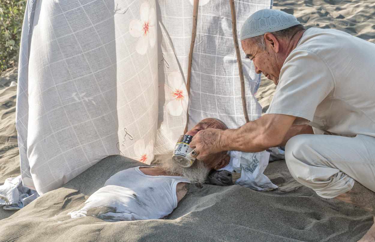 — Dopo essere stati sepolti nella sabbia, non si può fare il bagno per cinque giorni. Non si possono bere bevande fredde o alcoliche per sette giorni, ha spiegato ai nostri ospiti russi il guaritore locale, scoraggiandoli definitivamente dall'idea di provare la procedura anche solo in parte. Ma il sole stava già tramontando. Sfruttando tutti i vantaggi visivi dell’«ora d’oro», i fotografi hanno lasciato la duna insieme agli altri visitatori.