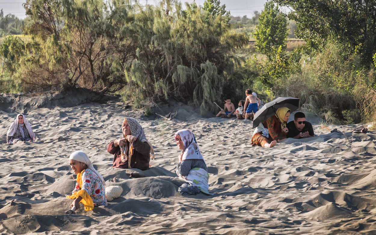 Attraversato il ponte sul fiume Syr Darya, abbiamo svoltato a sud-ovest e dopo quindici minuti, poco prima del villaggio di Buston-Buva, ci siamo imbattuti in... una specie di spiaggia. Circondati da campi coltivati, due dune del deserto selvagge e desolate con sabbia color cenere, ricoperte di saksaul, fitti cespugli di grebenščik e kandym. Ho già raccontato ai lettori di Fergana l'origine di queste dune relitte, che punteggiano tutta la regione di Fergana. In breve, si tratta dei resti del deserto Accum, che occupava tutta la parte centrale della Valle di Fergana dai tempi immemorabili fino alla metà del XX secolo, quando fu spostato dallo sviluppo della coltivazione irrigua del cotone e dalla conseguente esplosione demografica.