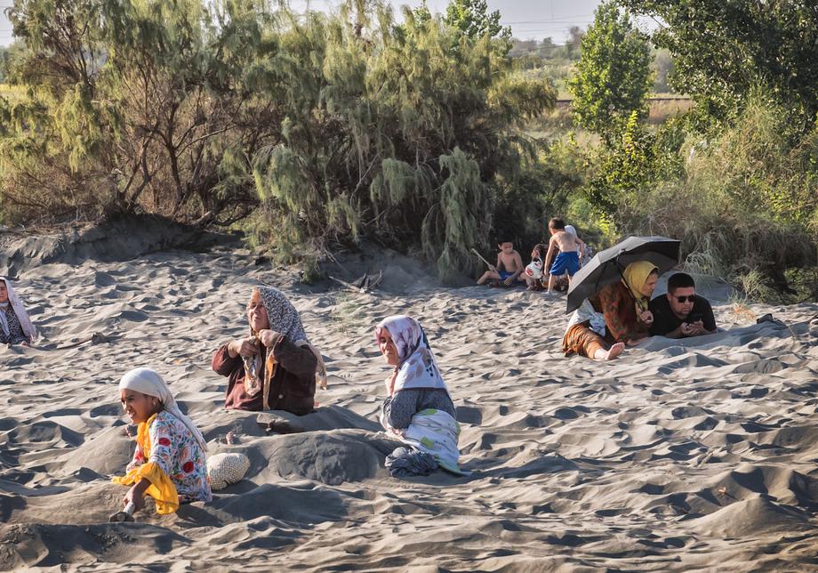 La duna nel distretto di Buvaidin della regione di Fergana è nota per il fatto che qui persiste un'usanza medievale. Alla fine di agosto e all'inizio di settembre, quando il sole picchia forte ma non ammazza più, qui si radunano e trascorrono l'intera giornata intere folle di persone che fanno bagni di sabbia calda, sperando in una guarigione dalle malattie della pelle, ossee-articolari e da altri disturbi. A giudicare dal fatto che a queste procedure annualmente arrivano non solo dai vicini kishlak, ma anche da altre regioni abbastanza distanti dell'Uzbekistan, alcuni trovano beneficio in questa cura. O almeno così credono. Si immergono la mani e i piedi nella sabbia, a volte tutto il corpo, lasciando fuori solo testa e petto — per evitare un attacco di cuore. Si proteggono dai colpi di sole con tende artigianali.