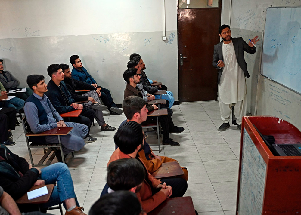 Il Ministero per la promozione della virtù e la prevenzione del vizio richiede che gli insegnanti partecipino a lezioni settimanali di due ore sulla sharia. Queste lezioni si concentrano sulla necessità di portare la barba e di diffondere attivamente la dottrina islamica durante l'insegnamento. Inoltre, i talebani hanno esteso l'istruzione religiosa obbligatoria a tutte le facoltà e hanno inviato decine di mullah nelle università per insegnare i principi della sharia al personale degli istituti di istruzione, al corpo docente e agli studenti.