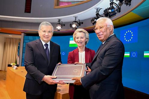 L'Uzbekistan e l'Unione Europea hanno concluso un nuovo Accordo di Partnership e Cooperazione Rafforzato. La cerimonia della firma si è svolta il 24 ottobre a Bruxelles alla presenza del leader della repubblica centroasiatica Shavkat Mirziyoyev, del presidente del Consiglio Europeo António Costa e della presidente della Commissione Europea Ursula von der Leyen.