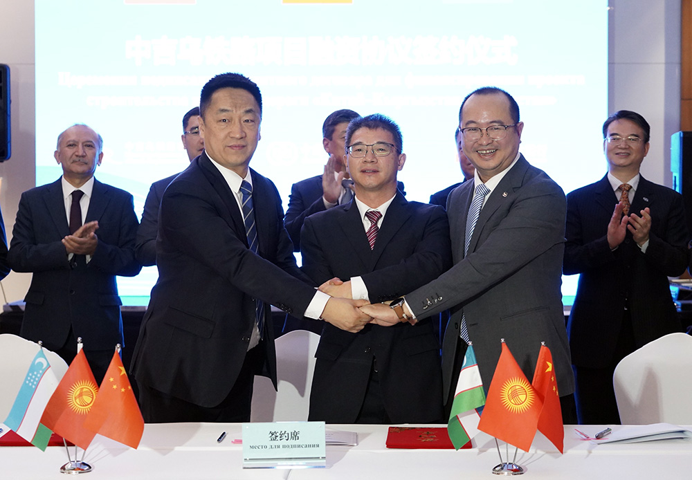 Il documento è stato firmato dai rappresentanti della «Compagnia della ferrovia Cina-Kirghizistan-Uzbekistan» (una società di progetto congiunta, SPK), istituita dai tre paesi partecipanti al progetto, e dal consorzio di banche cinesi, che include la Banca di Sviluppo di Stato della Cina e la China Eximbank. Alla cerimonia della firma ha partecipato il vice primo ministro — ministro delle risorse idriche, dell'agricoltura e dell'industria di trasformazione del Kirghizistan, Bakyt Torobaev.