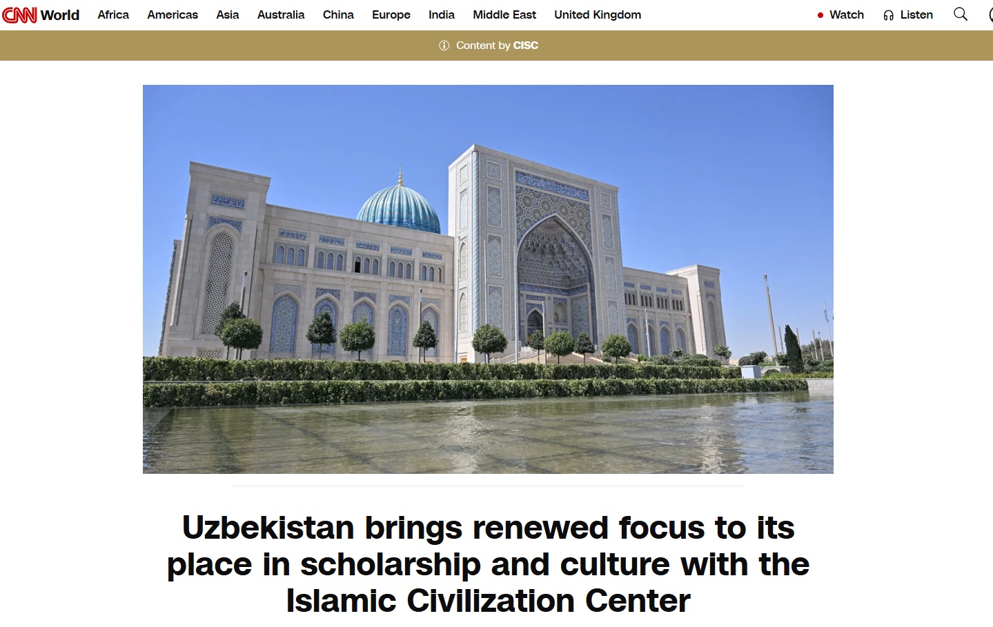 Il sito CNN World ha pubblicato un articolo dedicato al Centro della Civiltà Islamica dell'Uzbekistan. Lo riporta il servizio stampa del CIC.